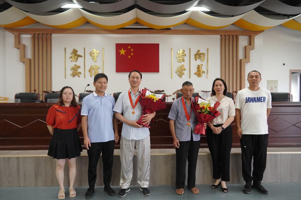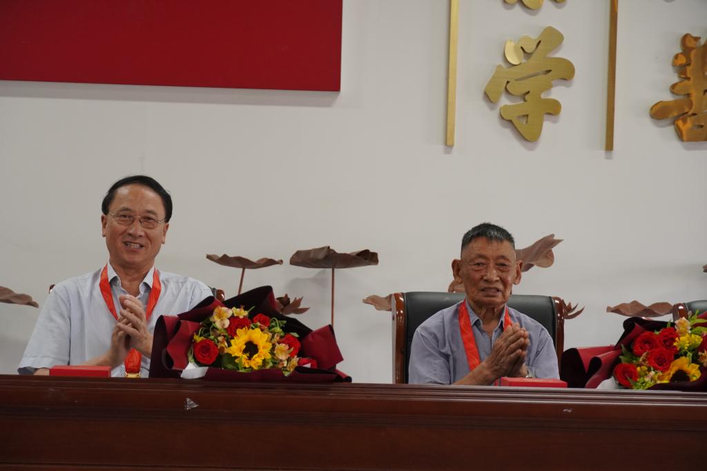 主题交流会上,下陈人大工委副主任兼区政协常委、农工党椒江区委会主委王琴和横河陈村村支书徐西根为横河陈村老党员徐昌鹏和郑华富颁发“光荣在党50年”纪念章,并送上鲜花,“HE你一起造乡”暑期社会实践队代表为两位老党员献上祝福贺卡。