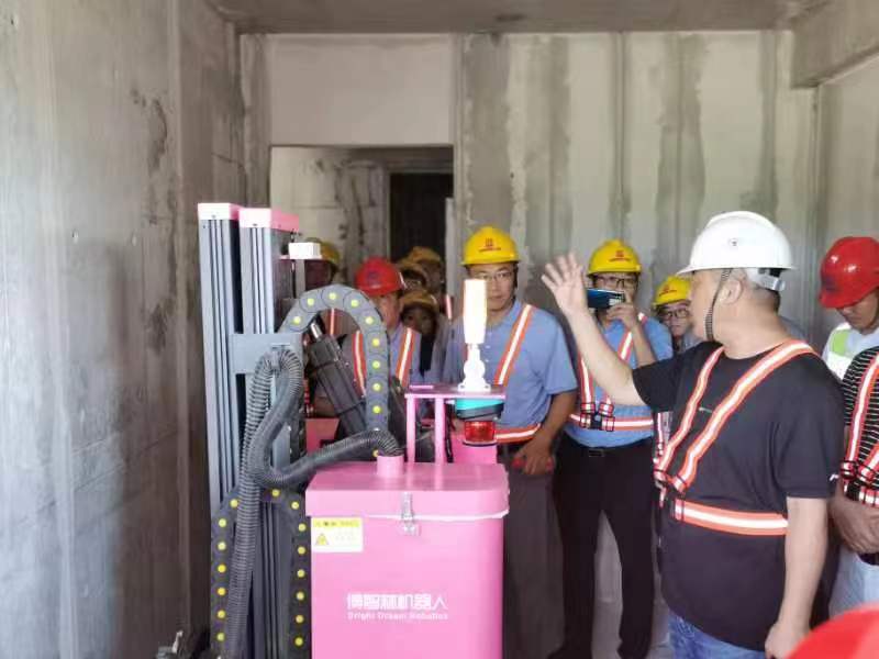 8月14日,建工学院副院长熊浩、王仕方带队,产业班师生一行共20人赴碧桂园台州市玖都荟项目进行技术交流。师生们参观了机器人现场作业的情况,碧桂园项目总经理刘兴华及博智林机器人公司技术人员全程陪同讲解。双方围绕智能建造技术发展与应用进行了交流座谈。王仕方副院长简要介绍了学院智能建造新专业建设等情况,项目部经理宋井龙对碧桂园的建筑全系列机器人开发应用情况进行了详细的介绍。双方参会人员针对机器人应用大面推广、智能建造本科专业人才需求及培养等问题进行了充分的交流。浙江大学教授、国家光学仪器工程技术研究中心主任何赛灵教授一同参加了交流会,并进行了精彩的点评。