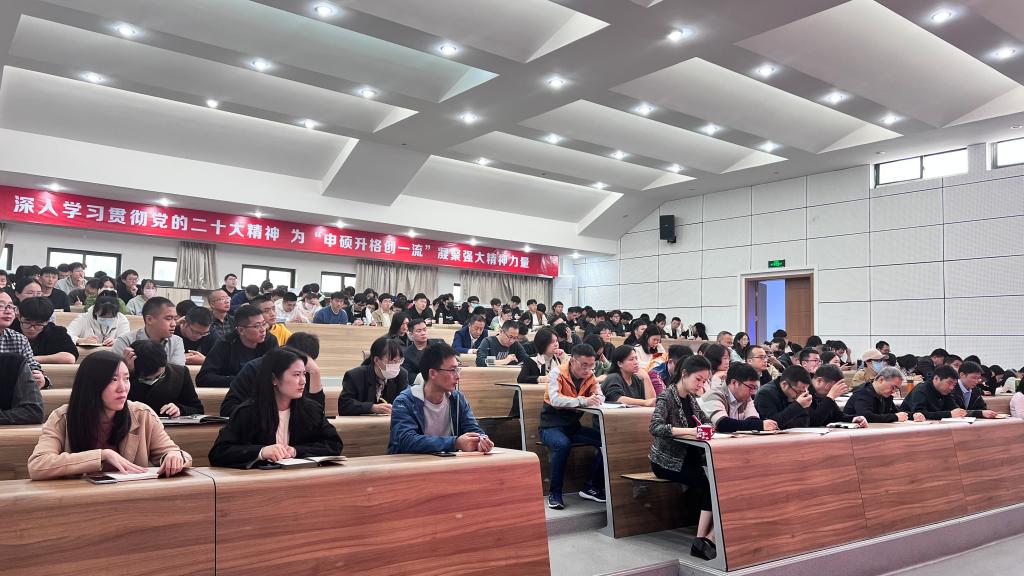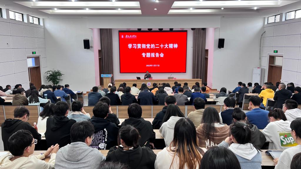 11月17日下午,校党委委员、副校长胡韶光在建工学院报告厅宣讲党的二十大精神。建工学院党委书记潘瑛主持会议,建工全体教师、学生党员到场学习。