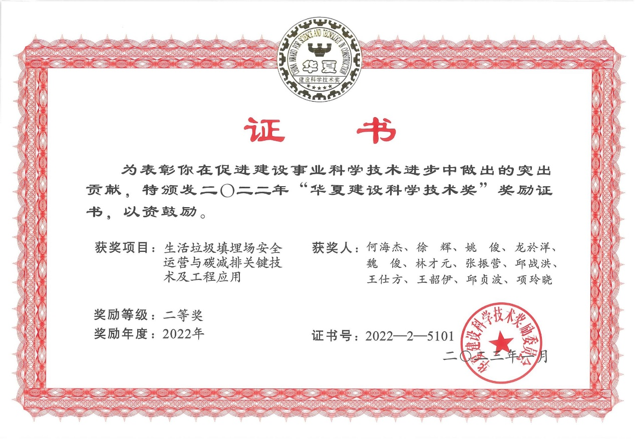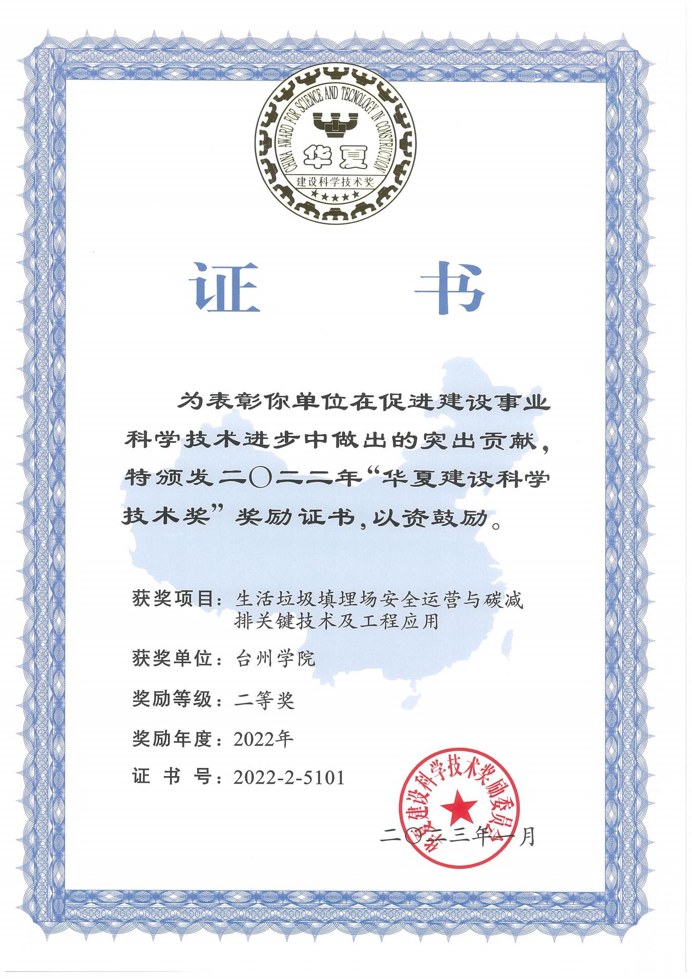 住房和城乡建设部科技与产业化发展中心于2023年1月28日发布了“2022年度华夏建设科学技术”评选结果公告,由我校建工学院何海杰副教授、姚俊教授、王仕方教授等为主要完成人的“生活垃圾填埋场安全运营与碳减排关键技术及工程应用”成果,荣获二等奖。该成果由台州学院牵头,联合浙江理工大学、中国矿业大学、中国电建集团华东勘测设计研究院有限公司、浙江省隧道工程集团有限公司等单位完成,这也是本校首次牵头获得此次奖项。