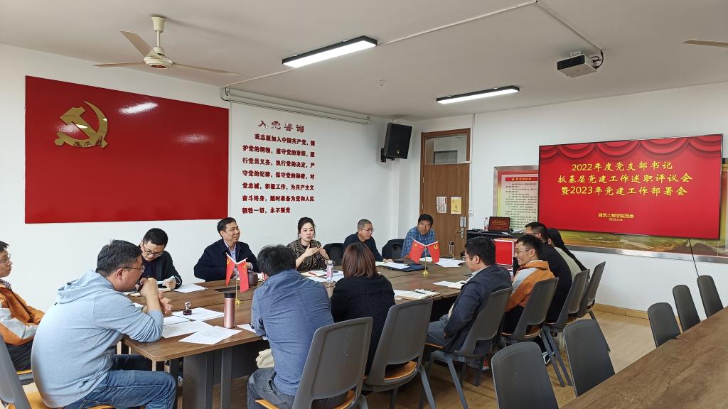 3月16日下午,建工学院党委在学院党员之家召开2023年度党建工作部署会暨2022年度党支部书记抓基层党建工作述职评议会。学院党委书记潘瑛主持,学院党委委员、各党支部书记参加,教工支部委员列席会议并参加评议。