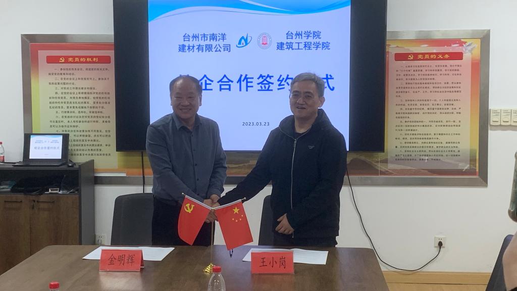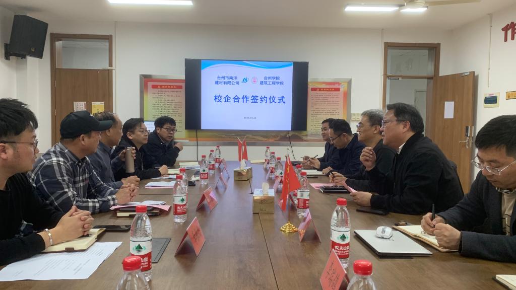 3月23日下午,台州市南洋建材有限公司董事长金明辉一行6人赴建工学院进行合作签约。院长王小岗及10位博士团队出席签约仪式,并开展合作研讨。
