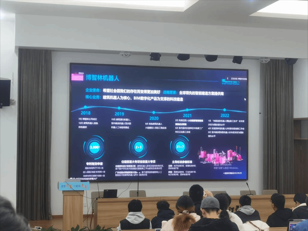 启动仪式后,博智林机器人有限公司研发部工程师刘成斌向同学们介绍了目前公司研发的建筑机器人,以科技赋能,提高产业核心竞争力。