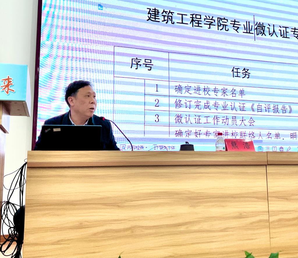 会上,副院长熊浩以PPT通报的形式重点部署了专业微认证专家进校分解工作。他指出,全体教职工要强化责任意识,勇于担当,团结协作,认真、高效地做好专业微认证专家进校前的材料准备、考察安排等各项工作。