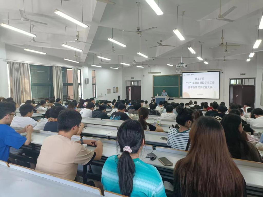 为做好暑期留校学生教育管理,高质量开启假期学习模式,6月28日下午,学院集中召开暑期留校学生工作部署会暨安全教育大会,辅导员洪莹、陈晓瑜及近200余名学生参加会议。学院党委副书记林霖作工作部署。
