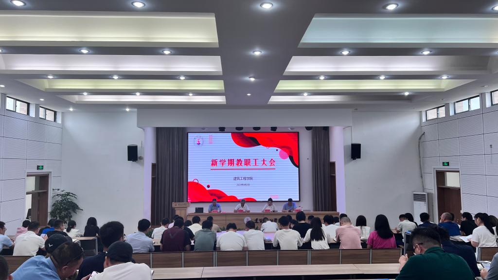 9月2日下午,建工学院召开新学期全院教职工大会,部署新学期工作。院长王小岗主持,学院领导班子、全体教职工参加会议。