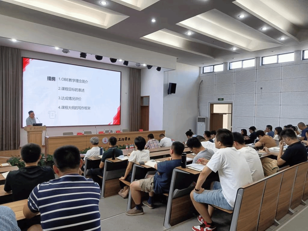 教学副院长熊浩教授以《基于OBE理念的课程教学大纲制作》为题,从OBE教学理念介绍、课程目标的表述、达成情况评价、课程大纲的写作框架等层面,阐述了如何做好人才培养计划的教学大纲。