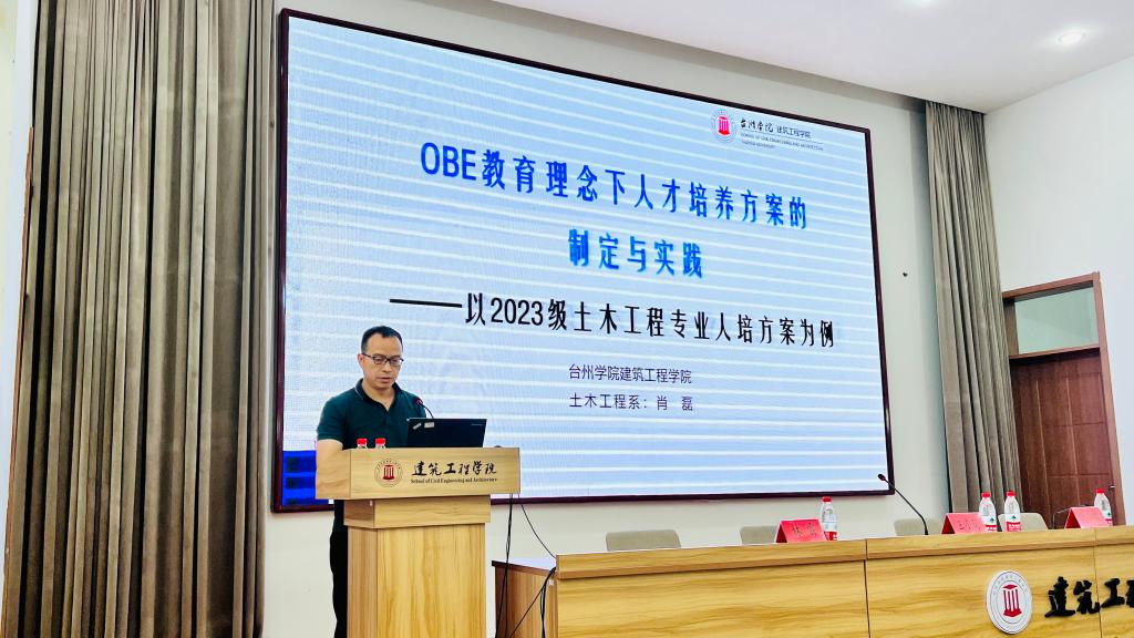 会上,建筑工程学科组主任肖磊以《OBE教育理念下人才培养方案的制定与实践》为题、以2023级土木工程专业人才培养方案的制订工作为例,介绍了对OBE教育理念的认识、人才培养方案的制订思路等。