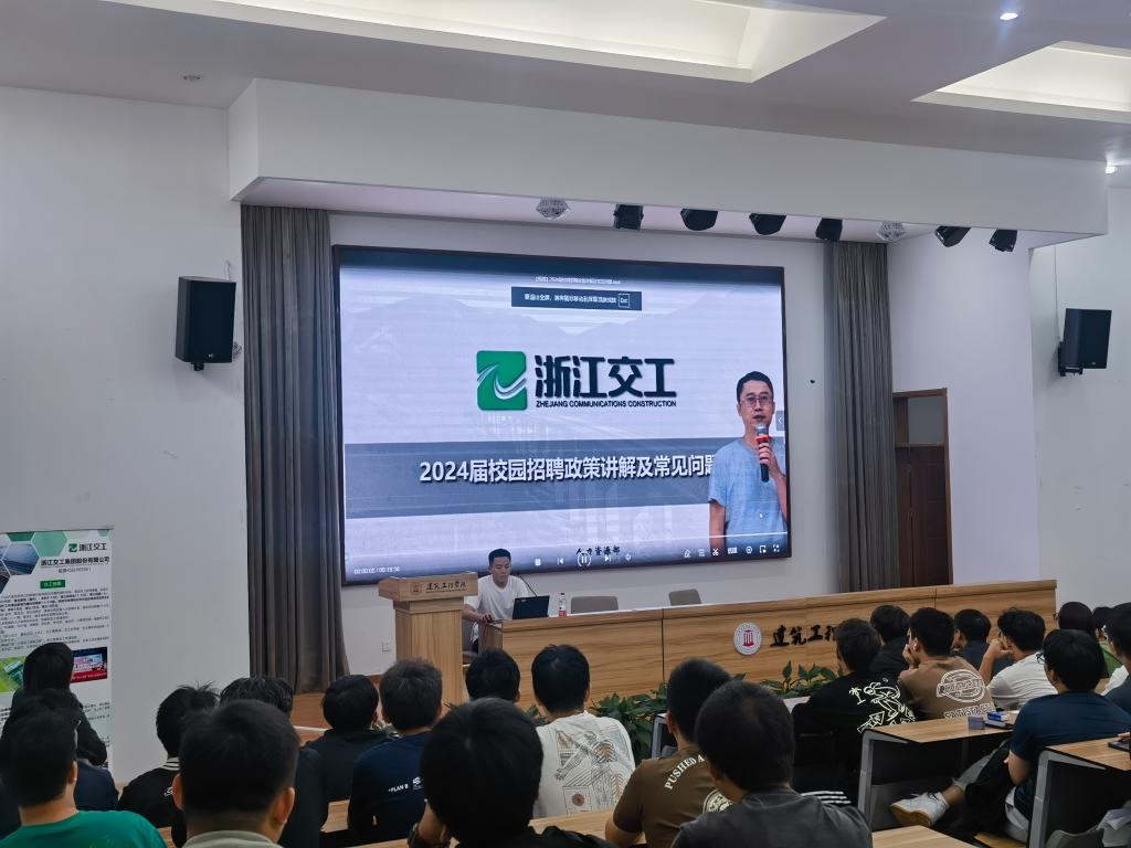 为早日谋划2024届毕业生就业工作,10月12日、13日下午,建工学院召开2024届毕业生首场道桥专业专场招聘会,中铁二十四局与浙江交工集团股份有限公司应邀来校参加专场宣讲会。2024届道桥专业毕业生与相关专业教师参加本次活动。