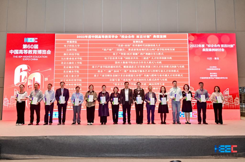 10月13日,第60届中国高等教育博览会在青岛红岛国际博览中心隆重举行,中国高等教育学会2022年度“校企合作 双百计划“典型案例研讨会同步召开。我校建筑业现代化产业学院联合方远建设集团股份有限公司和华神建设集团限公司申报的“校产研三园融合,推进建筑业现代化台州产业学院持续发展”案例,荣获2022年度中国高等教育学会“校企合作 双百计划”校地融合类典型案例称号,并在会上接受了颁奖。
