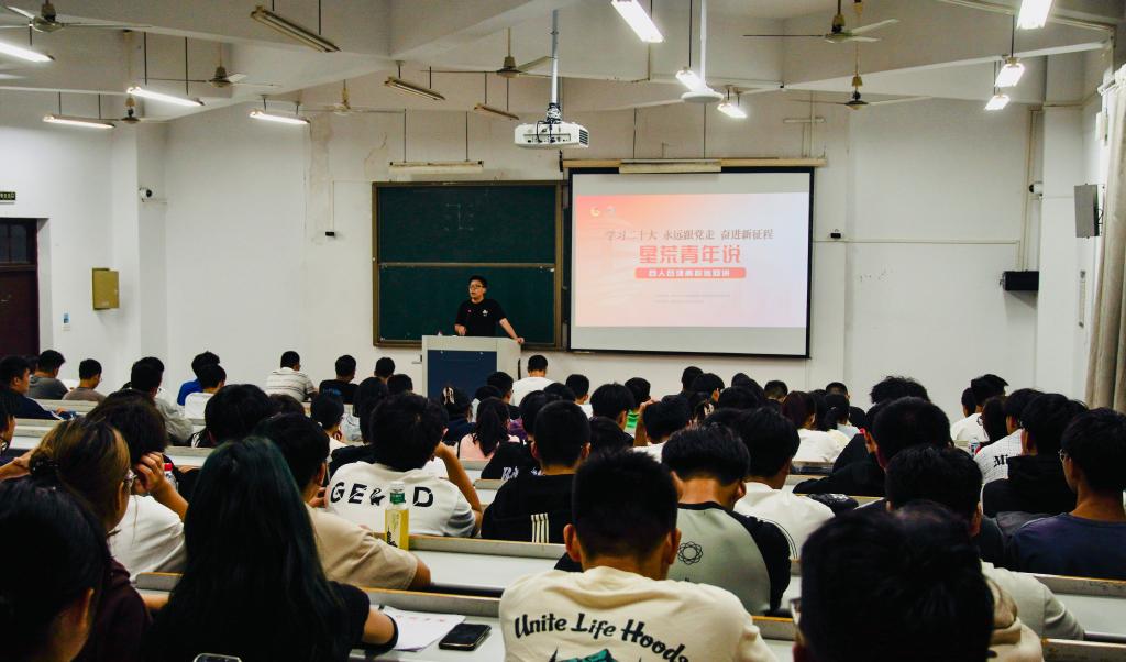 10月16日晚,建筑工程学院组织开展“垦荒青年说”百人百场高校巡回宣讲活动,宣讲团成员陶媛、龚清枫、丁晶玲和李鑫受邀出席活动,学院2023级学生现场聆听宣讲。