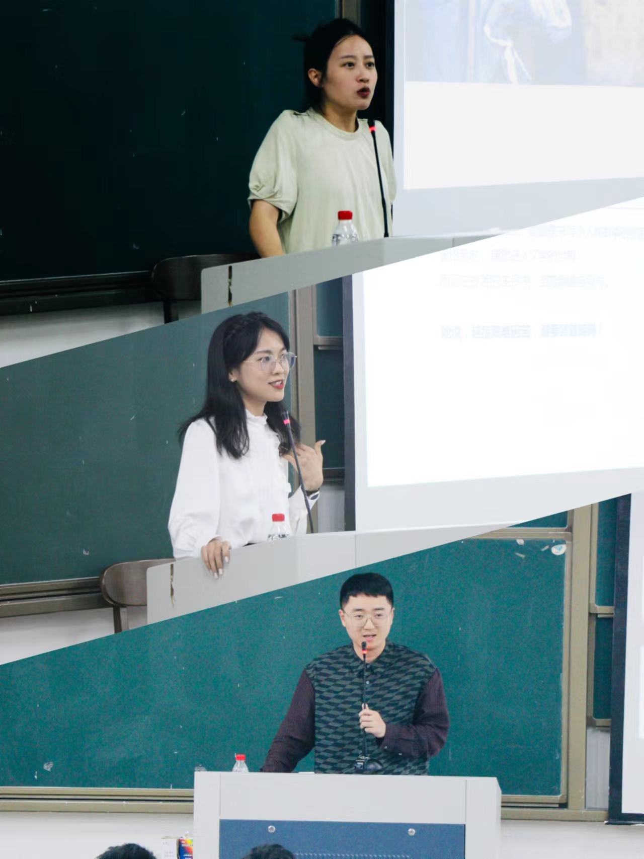 丁晶玲围绕“半条被子”的故事,生动诠释中国共产党人的初心和使命,号召全体同学在思想上积极向党组织靠拢;李鑫围绕大陈岛垦荒故事,结合自身学习成长经历,鼓励同学们利用好大学时光,努力开拓出属于自己的一片天地;陶媛结合带领学生参与大陈岛医疗援助的经历,讲述作为一名高校辅导员的责任感和使命感,引导同学们积极进取、勇于奉献;龚清枫以从事留学生辅导员工作的经历,为大家讲述留学生眼中的中国变化,告诉同学们要充分发挥优势,不负伟大时代。