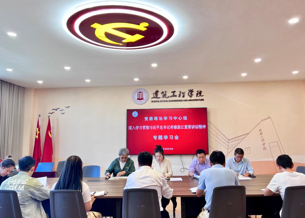 10月19日下午,建筑工程学院党委理论学习中心组在建工大楼党员之家召开深入学习贯彻习近平总书记考察浙江重要讲话精神专题学习会,进一步学深悟实习近平新时代中国特色社会主义思想。院党委书记潘瑛主持会议,学院领导班子、各支部书记参加会议。