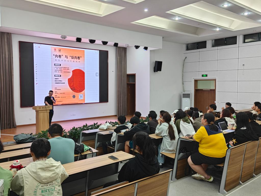 本次沙龙由孟勤林老师主持,主题为“内卷”与“反内卷”——转型中的当代建筑学。该沙龙围绕“转型中的当代建筑学与建筑学子心态”、“'内卷'的思维与'反内卷'的视野”、“建筑学的话语转向”、“'修身'、'修心'、'修业'——转型中的自我提升”这四大话题展开,徐振宇博士通过理论联系实际的方式,深入浅出的向学生们介绍了建筑学的前景与当代建筑学学生为转型可以做出的努力,为同学们打下了一剂积极面对未来的强心针。