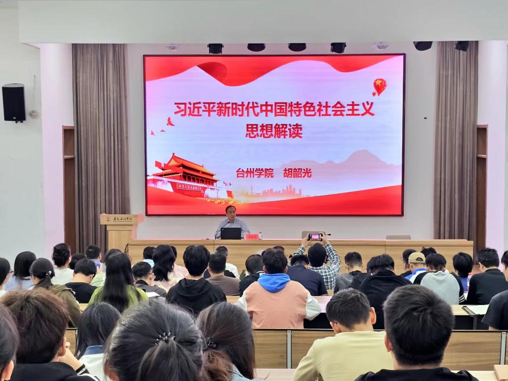 11月2日下午,校党委委员、副校长胡韶光应邀为建筑工程学院师生党员上《习近平新时代中国特色社会主义思想解读》专题党课。学院党委书记潘瑛主持,近200名师生党员齐聚学术报告厅聆听党课。