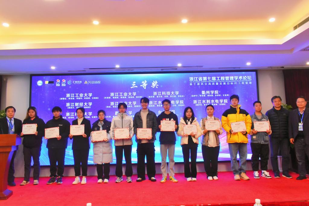 12月17日,第六届浙江省大学生智能建造与管理创新竞赛决赛在杭州市浙江科技大学圆满落下帷幕。我校肖磊、刘伟、徐文三位老师带领的五支队伍在此次比赛中斩获佳绩。由曾建雄、杜国豪、章煜、石宇栋、朱健翔组成的“涂”行天下队和由方铭、周思啸、孙叶琳、周书宇、余欣乐组成的“机-建”在行动队在本次比赛中包揽两项特等奖。由齐俊豪、张嘉轩、丁佳乐、姚竣译、陈婷组成的“3D打印晶格之美”队荣获一等奖。由陈雪彬、章佳莹、张一诺组成的“梦之启航”队荣获三等奖。由李家轩、张彦彬、相金辰、刘云鹏、乔进博组成的人类命运共“砼”体队荣获优胜奖。此外,由我院申报及完成的《地方应用型数字建造与管理人才产教融合培养模式探索与实践》荣获教学成果奖。