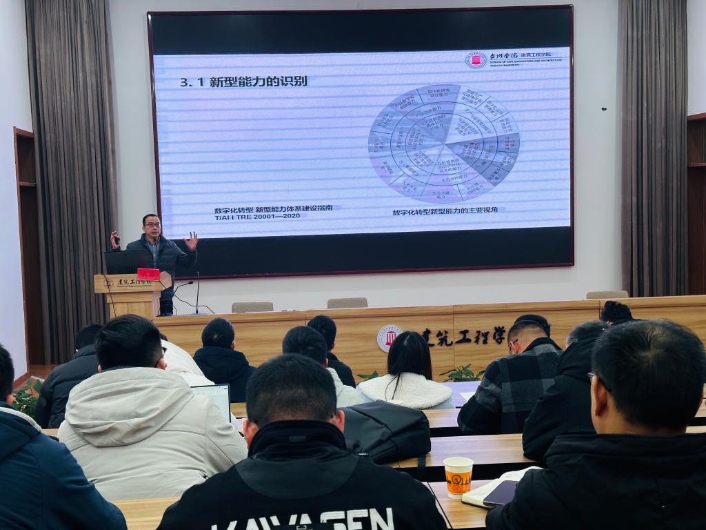 为了进一步推动国家智能建造试点城市的建设,提升智能建造水平,12月20日下午,台州市智能建造试点城市建设工作领导小组在我校举办“台州市智能建造企业和项目部转型升级培训班”,30余家企业,150余人参加培训。