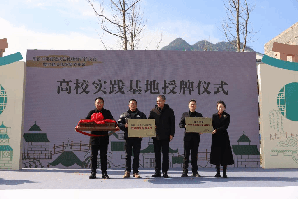 据悉,临海汇溪从事古建行业的人数达到3000余人,13名被国家文物局誉为“中国传统建筑名匠”。汇溪古建人所参与、主持的古建筑被列为国家重点文物保护单位、省级重点文物保护单位的有200余处,汇溪古建人的脚步已踏出了中国各地,甚至走出国门。汇溪也是全国首个获批“中国古建筑工匠之乡”荣誉称号。镇内也有保存较为完整、丰富的古建筑。建筑工程学院与汇溪镇,以汇溪古建营造技艺博物馆为平台,以汇溪古建工匠、古建产业为基础,共建台州学院古建营造技艺实训基地,为大树文物与历史建筑学院的学生提供高水平的实践教学平台。