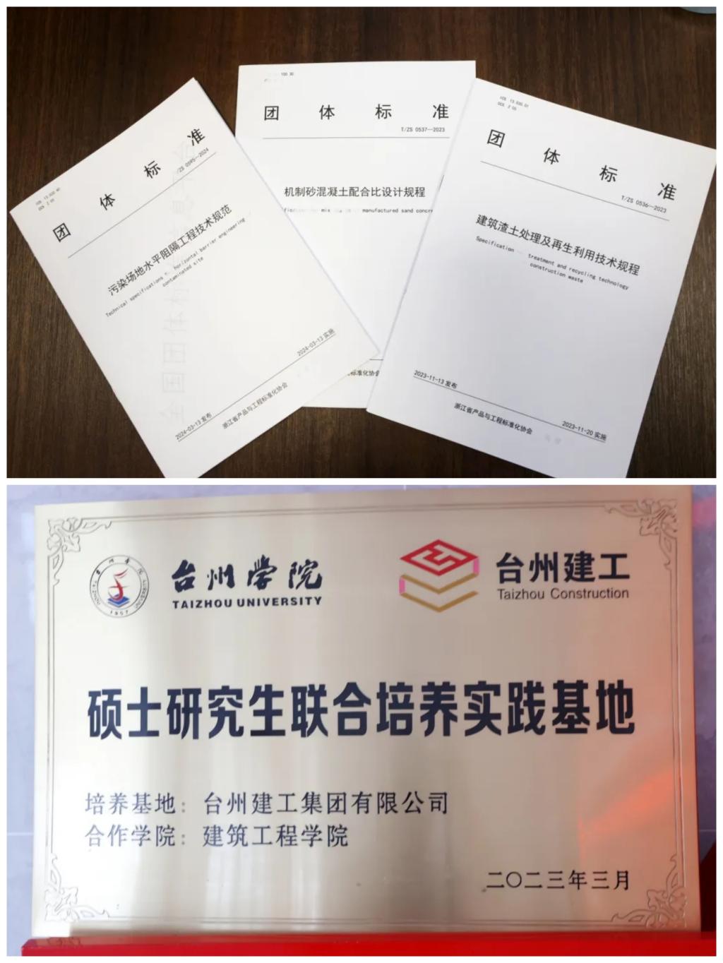 何海杰从学科建设、师资队伍、人才培养、科学研究等方面介绍了学院基本情况,希望以本次交流走访为契机,不断加强校企合作,实现聚合力谋发展、促共赢,学院将发挥人才优势,赋能建工集团所需。台州建工集团董事长兼总经理表示希望双方密接交流沟通,深入推进产学研合作。交流中,何海杰为台州建工集团有限公司博士后工作站带来了多项成果消息:台州学院与台州建工集团牵头起草的《建筑渣土处理及再生利用技术规程》《污染场地水平阻隔工程技术规划》《机制砂混凝土配合比设计规程》等三项全国团体标准已由浙江省产品与工程标准化协会发布;另外三个市/厅级科技计划项目正在申报中。