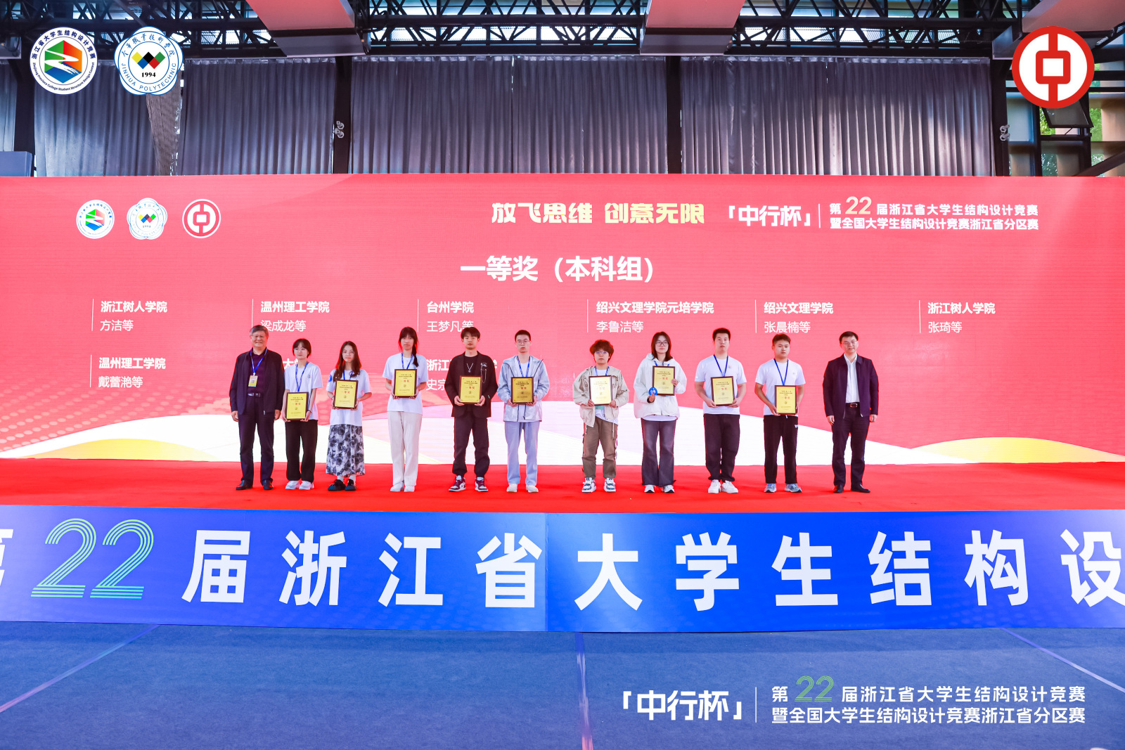 5月10日-12日,“中行杯”第二十二届浙江省大学生结构设计竞赛暨全国大学生结构设计竞赛浙江省分区赛在金华职业技术学院举行。我校建筑工程学院的王梦凡、郑琬婷、任可航组成的“摘星台”队在激烈的角逐中表现出色,荣获省赛一等奖,并位列本科组第四;刘学德、杜一可、周兴群组成德“先鋒台”队获得三等奖。建工学院连续四年获得国赛资格,并将代表浙江省参加“构力杯”第十七届全国大学生结构设计竞赛。同时,我校荣获优秀组织奖。