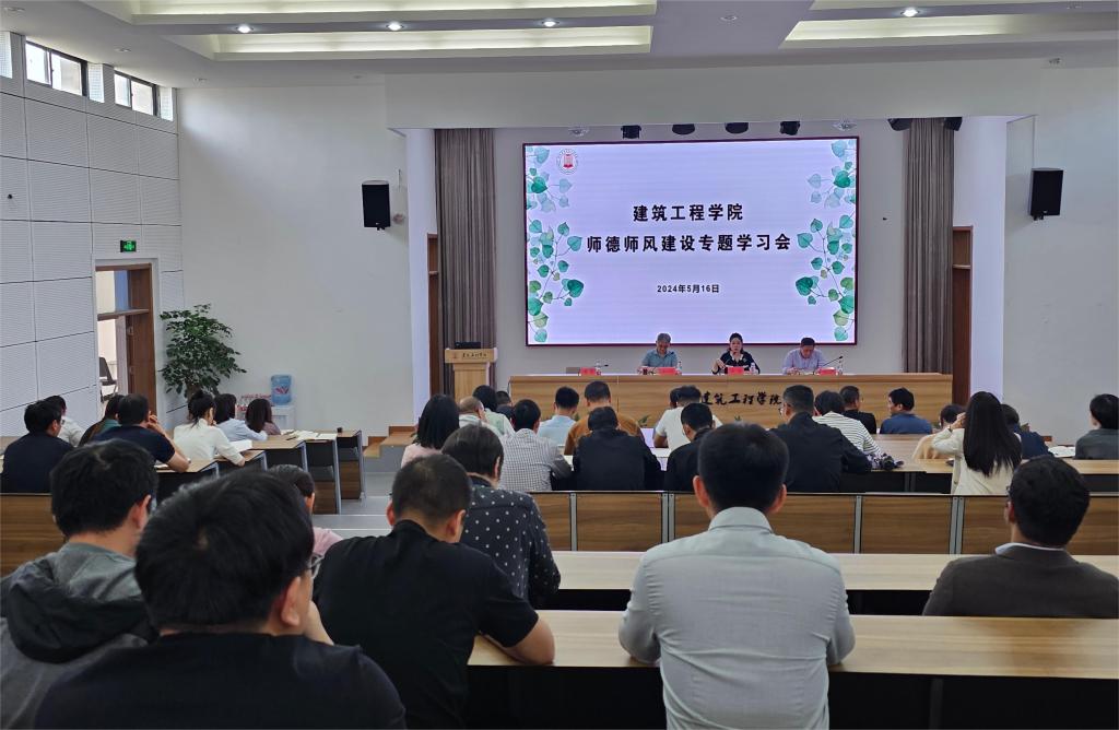 5月16日下午,建工学院在学术报告厅召开师德师风建设专题学习会,集中学习“教育家精神”,推进学院师德师风建设。会议由学院党委书记潘瑛主持,全院教师参加。