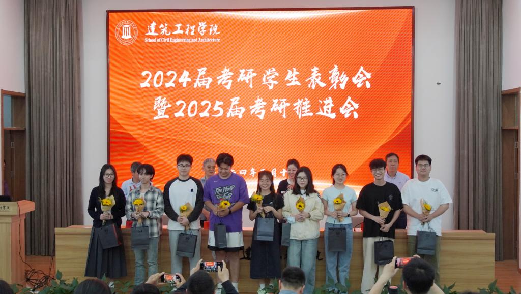 会上,学院对升学之星进行了表彰,送上鲜花和祝福,希望他们用奋斗继续抒写自己的青春。教师代表20道桥班主任程嘉稀分享了自己的学术成长经历,勉励同学们要夯实专业基础,提升核心能力,做一个长期主义者。20给排水樊哲钰分享了自己成功上岸湖南大学的感受与经验,25届学生代表王骐畅表达了考研的坚定决心与态度。