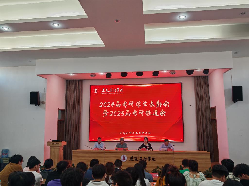 五月骄阳伴花香,捷报到来携清爽。为表彰激励考研优秀学子,弘扬优良院风学风,发挥榜样示范作用,5月17日下午,建筑工程学院在学术报告厅隆重召开2024届考研学生表彰会暨2025届考研推进会。学院党政班子成员、毕业班班主任、学科主任、教师代表、学生代表、2024届拟录取学生及2025届考研学生参加会议。党委副书记林霖主持会议。