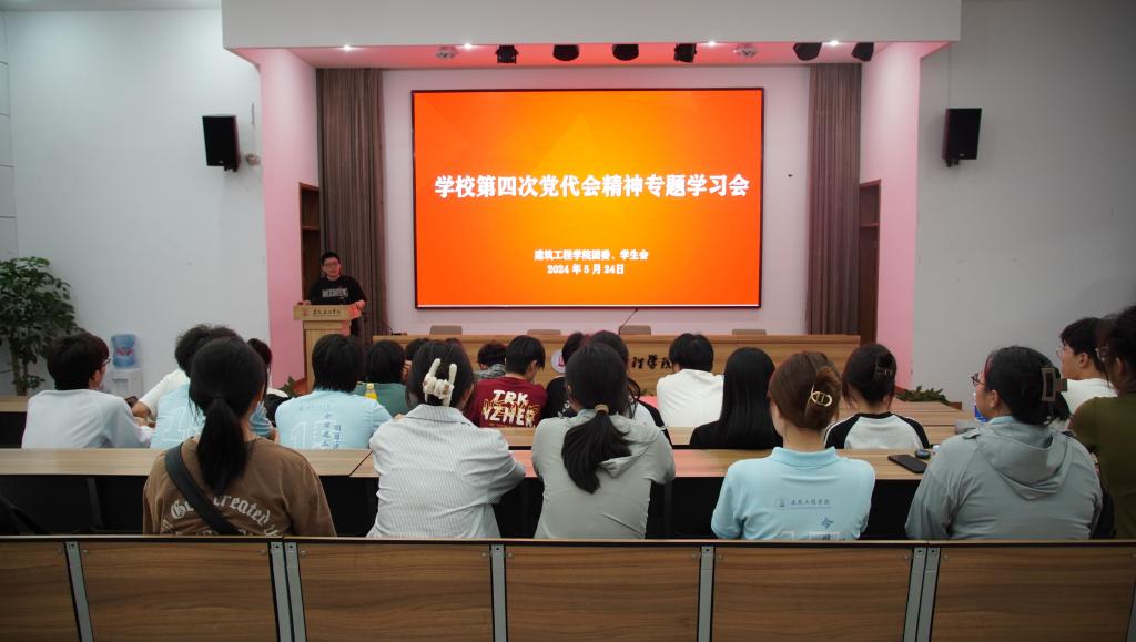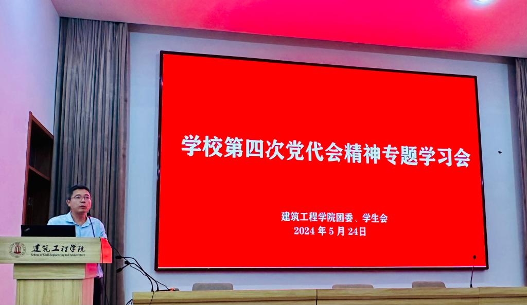 5月24日,建筑工程学院团委组织召开学校第四次党代会精神专题学习会,学院党委副书记林霖,学院学生干部代表参加会议,学院团委书记李鑫主持。