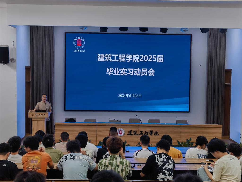 为做好2025届毕业生实习就业工作,6月28日,建工学院在学院学术报告厅召开2025届毕业生实习就业动员会。学院领导、辅导员、21级学生参加本次会议。