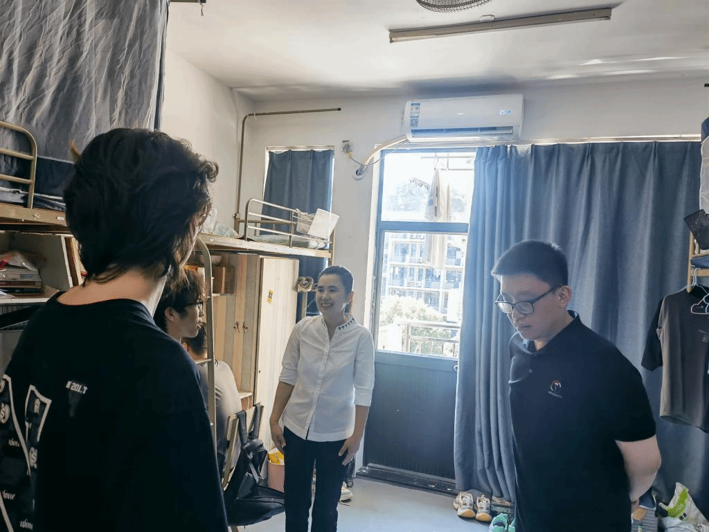 在寝室里,老师们亲切地与学同学们交谈,并对用电安全、消防安全等进行了全面而细致的检查。汤爽强调,要时刻绷紧安全这根弦,增强自我保护意识,共同维护安全有序的住宿环境。遇到任何问题都要及时与老师沟通,学院永远是大家最坚实的后盾。