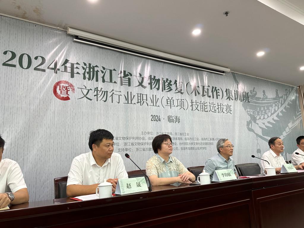 8月19日下午,2024年浙江省文物修复(木瓦作)集训班暨文物行业职业(单项)技能选拔赛开班仪式在台州学院临海校区举行。省文物保护利用协会会长杨建武,校党委委员、副校长李钧敏,临海市委常委、宣传部部长赵晟,建筑工程学院院长王小岗、大树文物与历史建筑学院院长黄大树及师生,与来自全省15家文物保护工程施工单位的30名学员出席开班仪式,省文物局副局长、二级巡视员郑建华主持开班仪式。