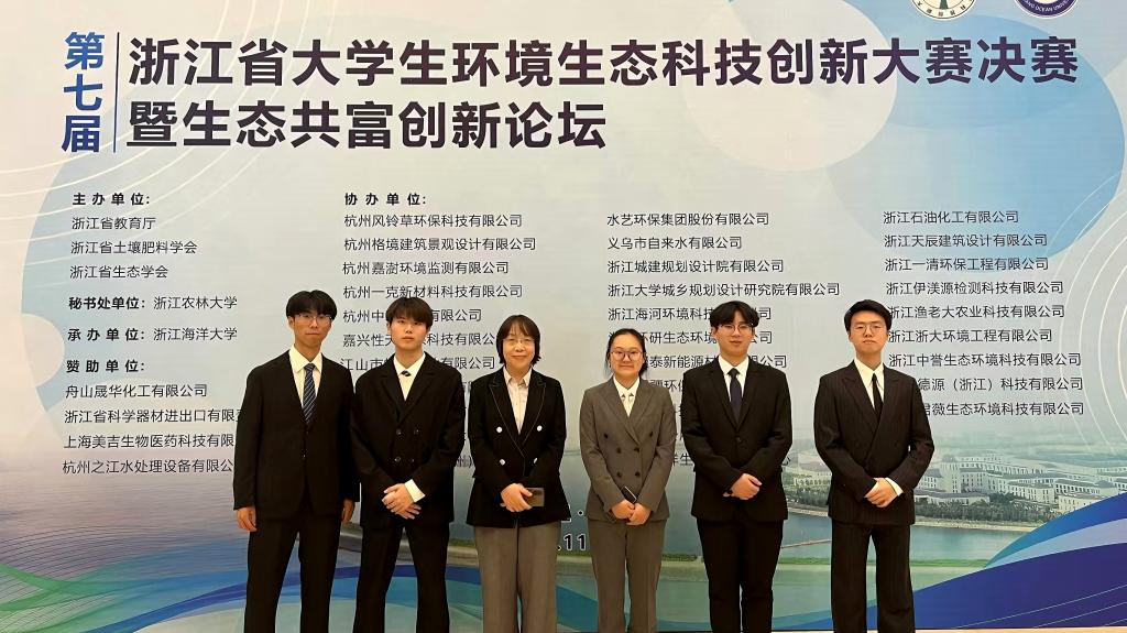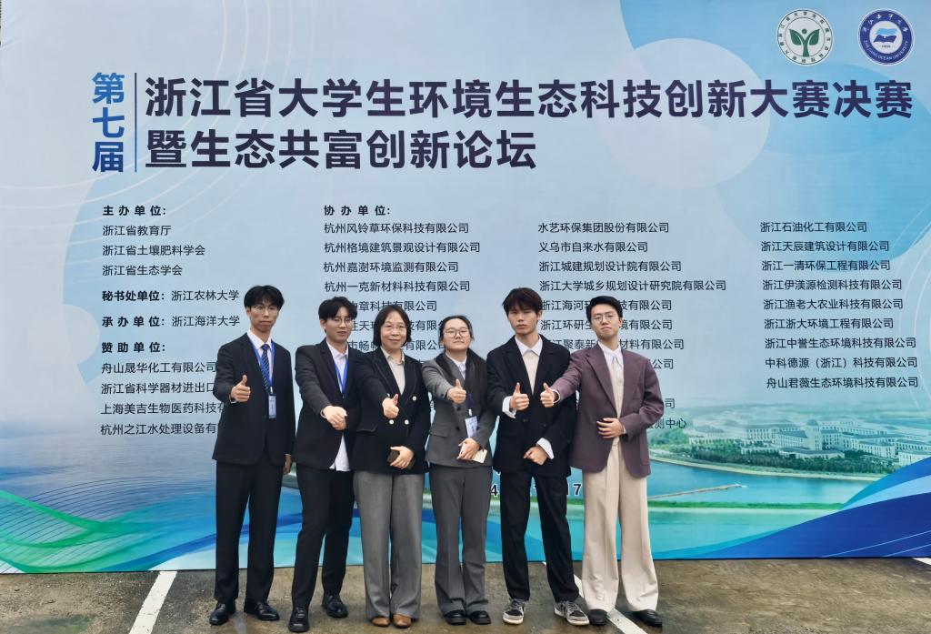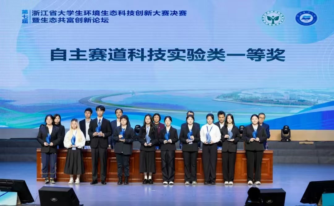 11月16日-17日,第七届浙江省大学生环境生态科技创新大赛决赛暨生态共富创新论坛在浙江海洋大学举行。由张桐雲、周宇瑄、贾凯瑞和韩翔宇组成的“007”队成功夺得一等奖,位列自主赛道科技实验类全省前十;由金希成、徐雨晨、李益书和陈逸欣组成的“阿尔戈”队荣获省赛二等奖。这是学院参加该项赛事斩获的最高荣誉,标志着学院在环境生态领域的实力更上一层楼。