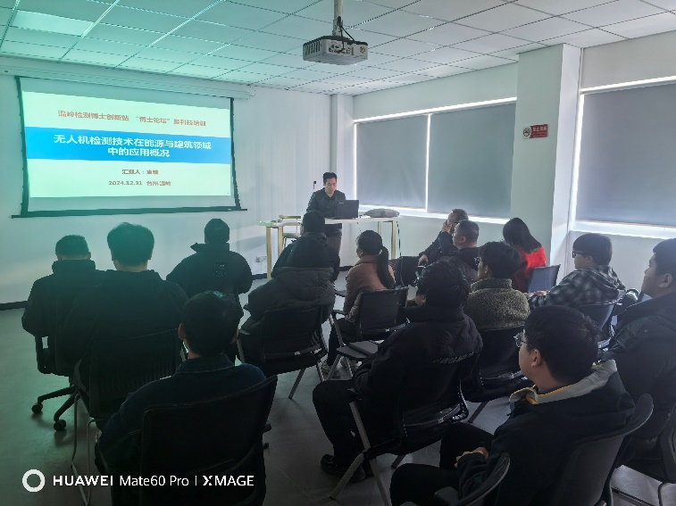 2024年12月31日在温岭市建筑工程质量检测有限公司学术报告厅成功举办了“温岭检测博士创新站第四期博士论坛暨科技培训”活动。此次活动由台州学院建筑工程学院、浙江省建筑业现代化台州产业学院、台州学院温岭研究院、温岭市科协及温岭市城市发展投资集团有限公司联合举办。活动旨在推动产学研合作,探索建筑工程领域中的最新科技应用,加速科技成果的转化和应用。本次活动参与人员包括浙江省建筑业现代化台州产业学院执行院长/台州学院温岭研究院副院长王仕方、台州学院建筑工程学院副教授/温岭市建筑工程质量检测有限公司博士创新站负责人何闯博士、台州学院建筑工程学院副教授袁骥,以及温岭市建筑工程质量检测有限公司中层及以上员工。
