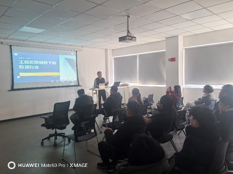 最后,王仕方院长作报告“工程伦理视野下的检测行业”。在他的报告中,他详细探讨了工程伦理在检测行业中的重要性及其对工程质量和安全的影响。王院长指出,随着技术的进步和市场的快速发展,检测行业面临着越来越多的伦理挑战,包括数据的透明度、结果的真实性和职业行为的诚信问题。王院长的报告为检测行业的可持续发展提供了指引,突出了强化伦理实践的紧迫性和必要性。