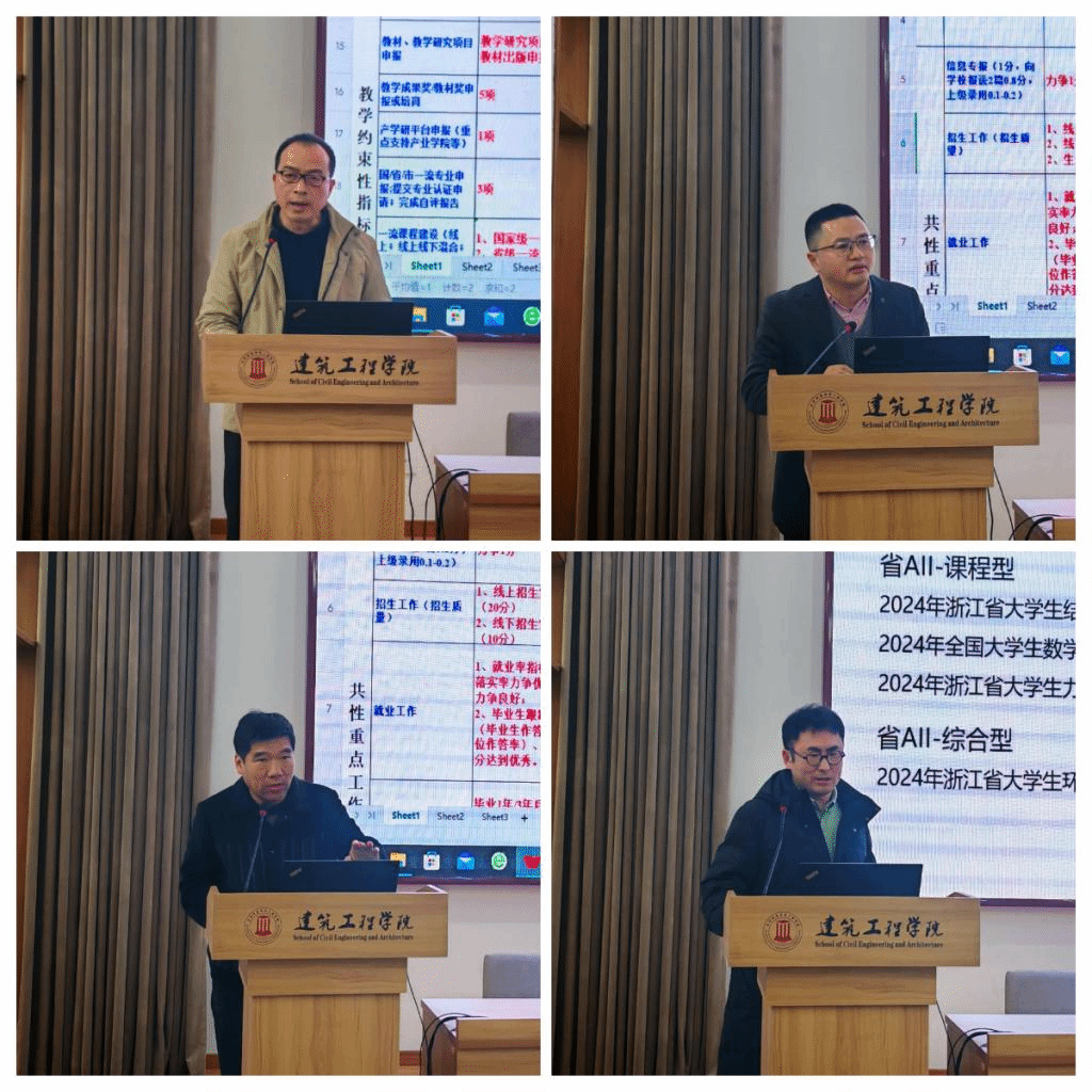 院长王小岗向全院教职工传达了学院2024年度目标责任制考核优秀的喜讯。涓涓之流,积成江河,学院上下一心,在行业下行的趋势中全力以赴、激流勇进,取得了省科技进步奖等突破性的成果,是全体老师共同奋斗的结果。他指出,在肯定成绩的同时,也要清醒的看到2025年学院各项工作面临的问题和挑战。针对指标薄弱点,会议提出了改进及提升要求,并部署了2025年学院重点工作。