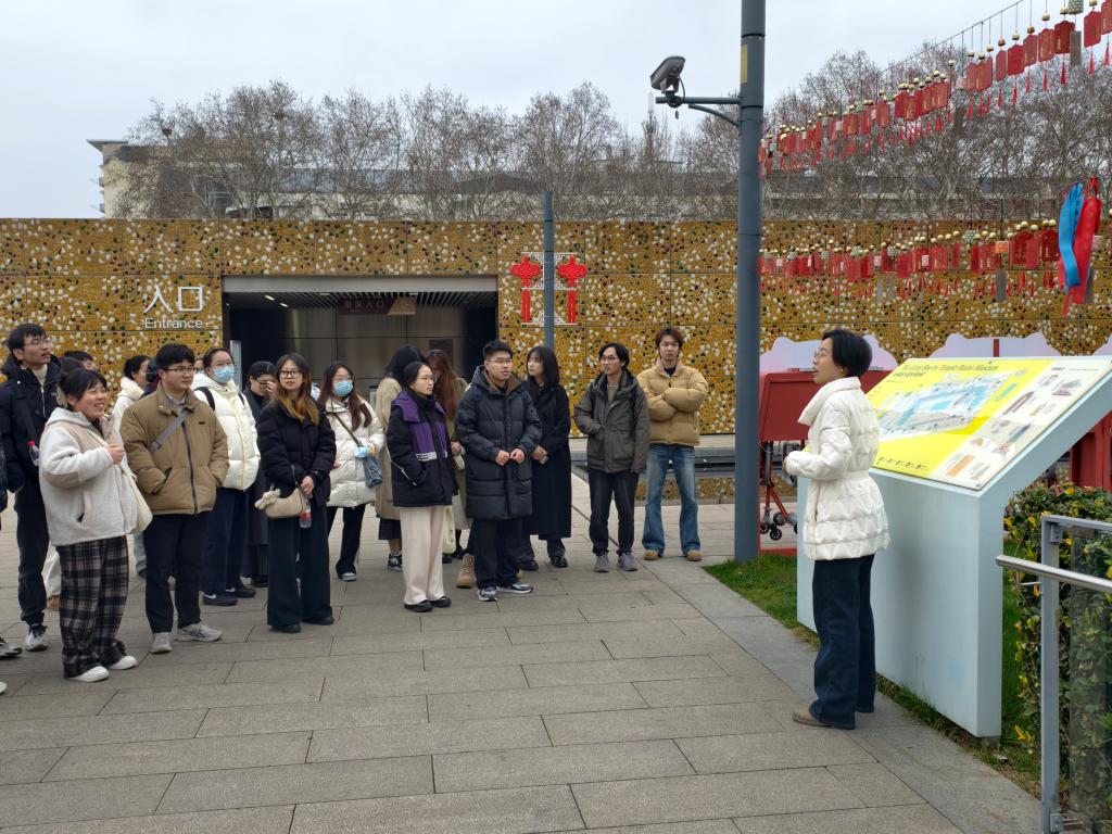 5日上午,师生团队重点考察了大报恩寺遗址公园这一国家级文化地标。该遗址通过创新性保护设计,将明代琉璃塔地宫遗址、博物馆展陈空间与当代建筑语汇有机融合。"轻钢结构+玻璃幕墙"的现代建构既实现历史空间转译,又形成古今对话的审美意象,为历史建筑活化利用提供了"新旧共生"的典范样本。