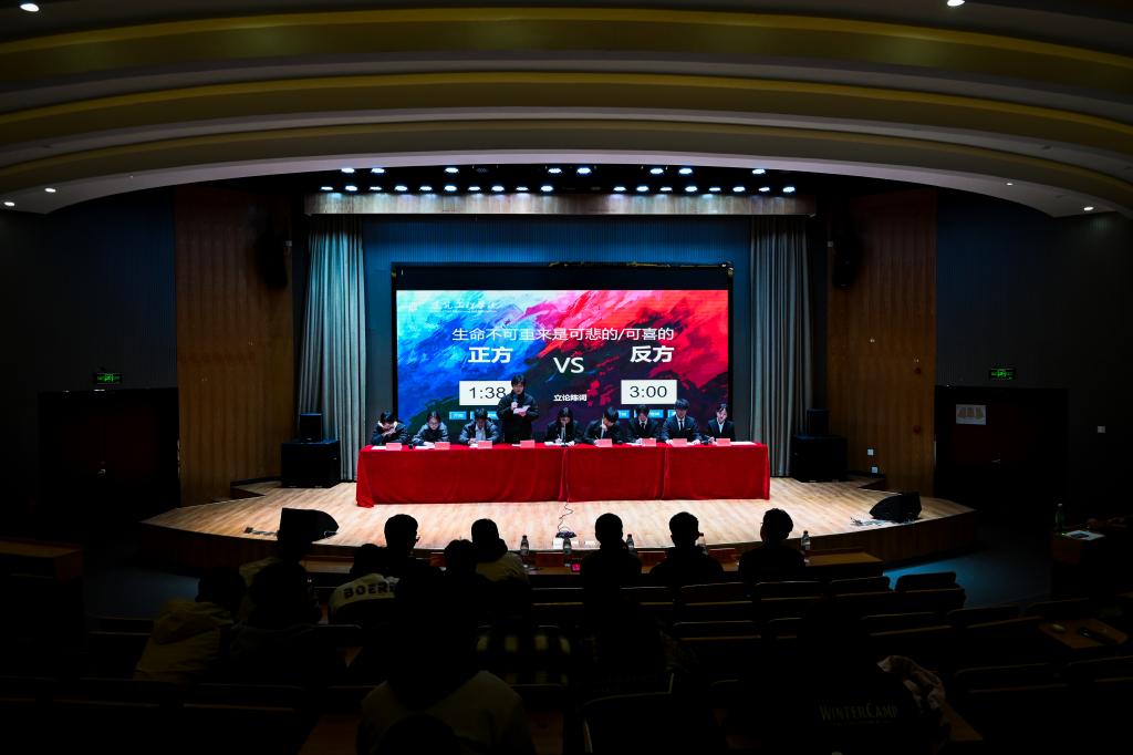 本次赛事历经初赛、复赛层层选拔,最终四支队伍脱颖而出。季军争夺赛围绕“生命不可重来是可悲的/可喜的”展开。正方以“死亡不是终点,遗忘才是”为论据,强调遗憾赋予人生向上的张力;反方以疫情为例,论证生命不可逆性带来的珍惜与觉醒,提出“每一刻的不可复制性恰是幸福之源”。