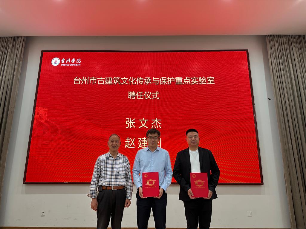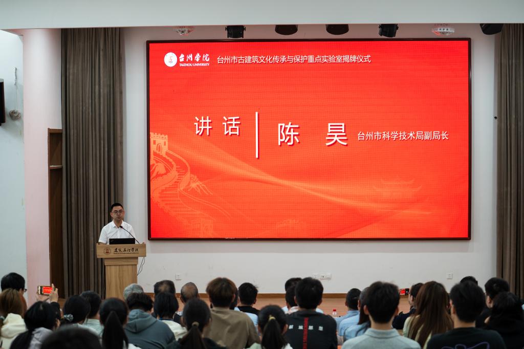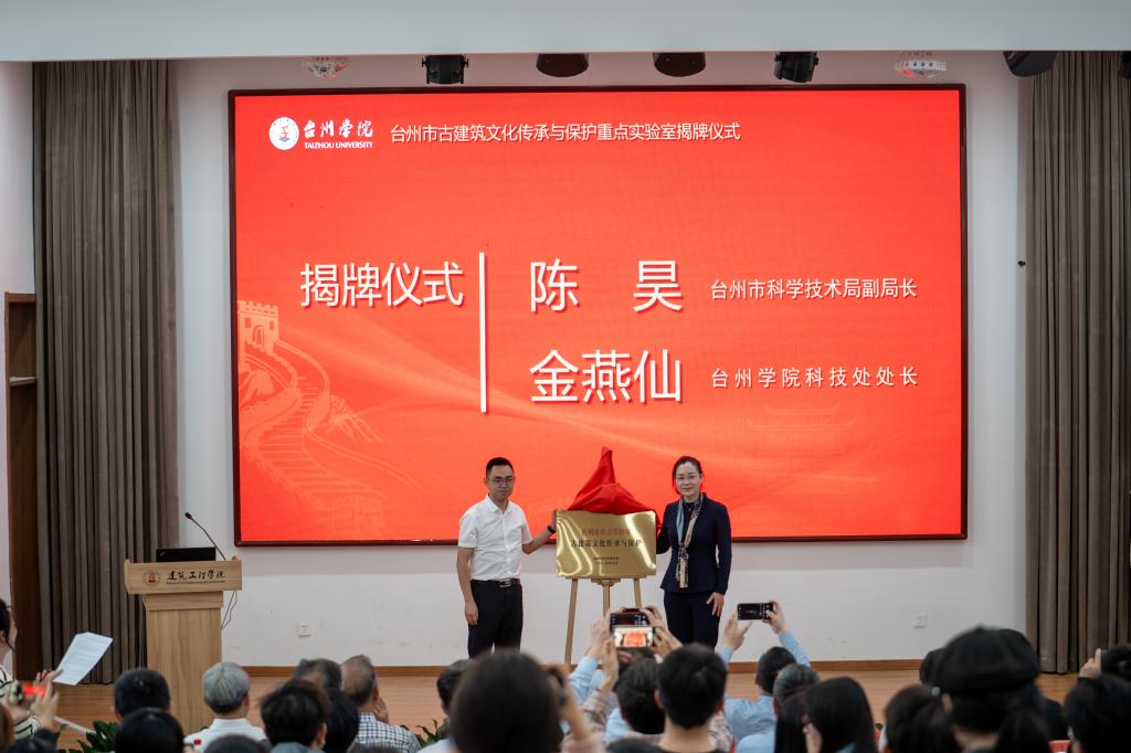 4 月 14 日下午,台州学院建筑工程学院举行台州市古建筑文化传承与保护重点实验室揭牌仪式。台州市科学技术局党组成员陈昊副局长,市科技局高新技术处潘立兵处长,市文化和广电旅游体育局文物遗产处洪浩处长等领导,共建单位浙江省临海市古建筑工程有限公司、浙江国腾建设集团有限公司等嘉宾齐聚台院,共启台州古建筑保护新征程。仪式由建筑工程学院党委书记潘瑛主持。