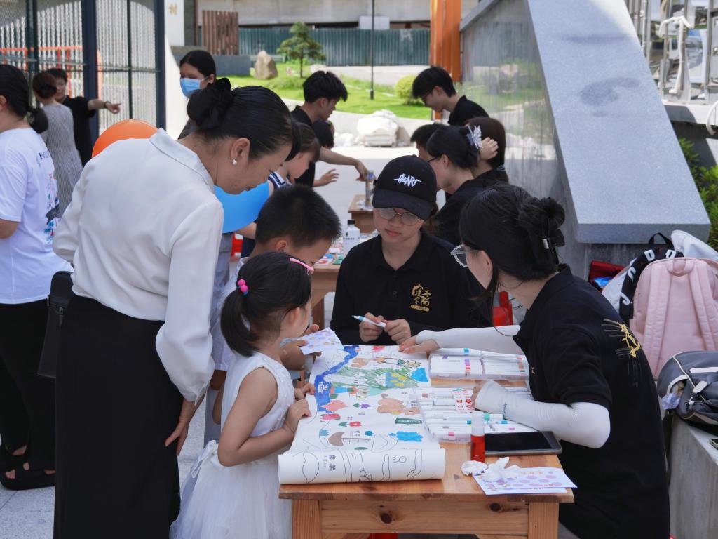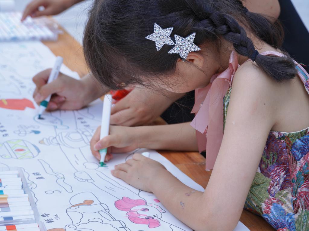活动还特别设置了“涂鸦文化画卷”环节,众多的小朋友们一起用画笔在长卷上描绘出眼中的世界。并在实践队员的的引导下,规范使用普通话表达创作灵感,语言能力显著提升。此外,“美食大侦探”和“安全小脚丫”,则是分别聚焦食品安全知识与防溺水自救技能,培养孩子们的安全意识。现场反响热烈,孩子们求知的目光与欢悦的笑脸,成为夏日最闪耀的风景。