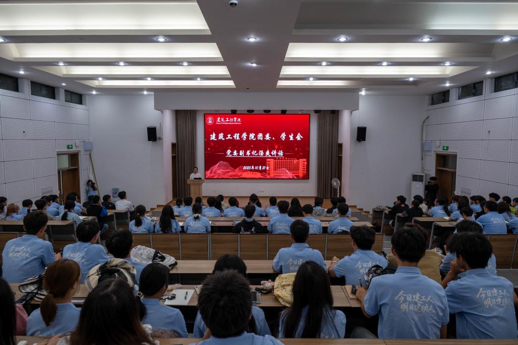为提升团学干部综合素养,建设高效务实的学生骨干队伍,10月21日晚,建筑工程学院第十七届团学第一次全体大会在报告厅顺利召开。党委副书记汤爽、团委书记薛军新出席,主席团成员常新宇主持会议。
