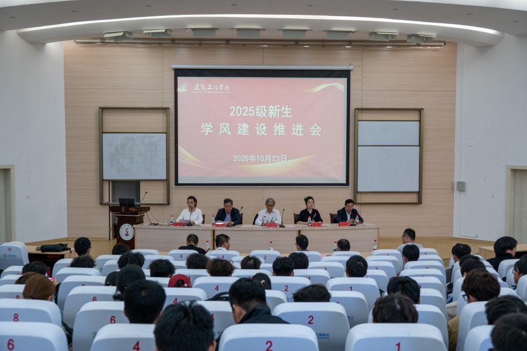 为深入贯彻落实立德树人根本任务,扎实推进学风建设内涵式发展, 助力新生全面发展与成长成才,10月23日下午,建筑工程学院召开新生学风建设推进会。学院院长王小岗、党委书记潘瑛,副院长熊浩、何海杰,学科主任、班主任及全体2025级新生参加会议。会议由学院党委副书记汤爽主持。