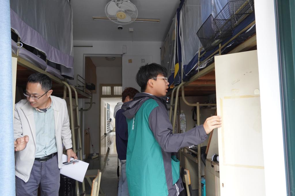 活动中,各寝室学生分工协作,严格按照卫生标准开展清扫:清扫地面浮尘与污渍,擦拭床架、桌椅、门窗等设施,分类规整个人物品,对阳台缝隙、衣柜角落等卫生死角进行 “拉网式” 清理,杜绝卫生盲区。团学公寓部陪同各班负责人开展建工学院学生宿舍全覆盖检查,验收宿舍卫生成效与违章电器检查处置。老师们实地走进班级学生宿舍,面对面关心学生生活状态、倾听学生生活诉求,让学生感受到学院关怀。经共同努力,各宿舍窗明几净、物品有序,住宿环境显著改善。同学们在打扫过程中强化了集体意识与责任担当,并深切感受到学院 “以人为本” 的关怀温度,为校园文明提质升级注入了实际动能。