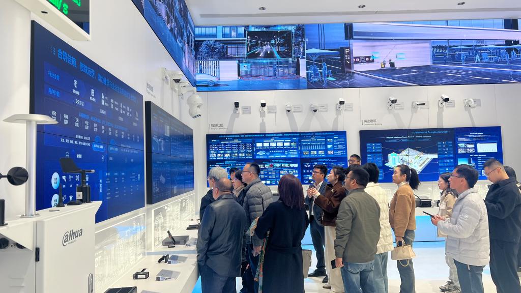 本次考察活动受到了大华股份的高度重视和热烈欢迎。在公司相关负责人的陪同下,建工学院考察团首先参观了大华股份的智慧物联网展厅。展厅内,从高清视频监控、智能门禁系统,到先进的AI识别算法、智慧消防和智慧工地整体解决方案,一系列尖端技术与创新应用让考察团成员印象深刻。教师们亲身体验了如何通过数字化平台对建筑工地进行实时监控、人员管理、设备调度和环境监测,对“智慧工地”的内涵有了更为直观和深刻的理解。