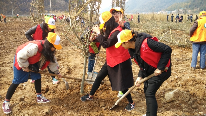 春回大地,万物复苏。一年一度的“赶走雾霾,拥抱绿色”植树活动轰轰烈烈地开始了。3月12日,我院志愿者携手台州市环保志愿者协会及社会各界环保爱好者,来到黄岩杨恩村进行“共铸中国心,共建爱心林”植树节活动。