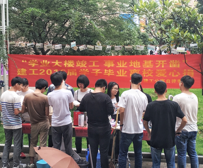 六月,又是一个离别的季节,岁月虽无声,旧物却是有情,在这毕业的季节里,为减轻2016届学长学姐们离校的负担,营造文明离校的和谐氛围,倡导“积极、健康、绿色”的毕业文化,我院公寓自律委员会于6月6日、7日在学院“弘毅阁”公寓门口举办主题为“文明离校树新风 毕业捐赠献爱心”的毕业学子离校爱心捐活动。