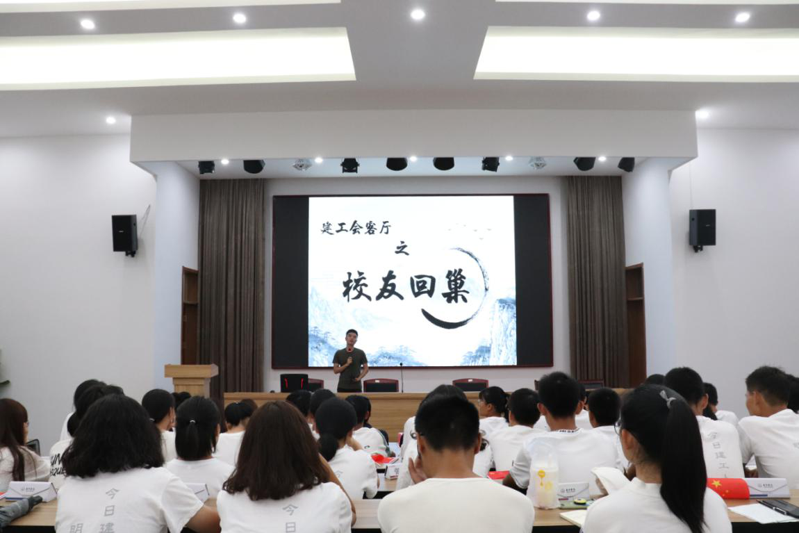 情系团学,薪火相传。大会在历届主席团的视频寄语拉开帷幕。原第七届团学会副书记冯浩、第八届团学会部长叶永雷作为历届团学骨干代表应邀返校和学弟学妹们交流。冯浩、叶永雷表达了他们对建工团学的深厚感情,并从个人成长、团学工作和职场生活等多个方面和大家进行了生动的分享,鼓励学弟学妹们要传承团学的优良传统,“学榜样、做榜样,团结协作、无私奉献,在服务中实现个人的成长”,做“青春的奋斗者”,做“精彩的建功人”。