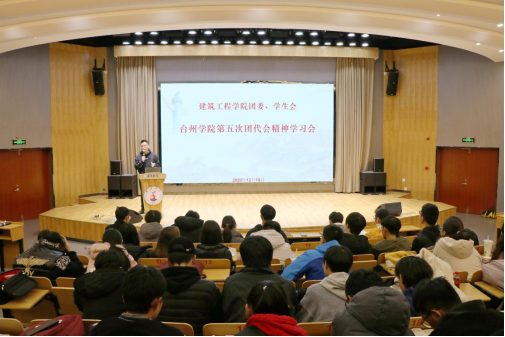 12月18日晚,建工学院召开共青团台州学院第五次代表大会精神学习会,代表团团长、分团委书记李鑫担任主讲,团学全体成员参加学习。