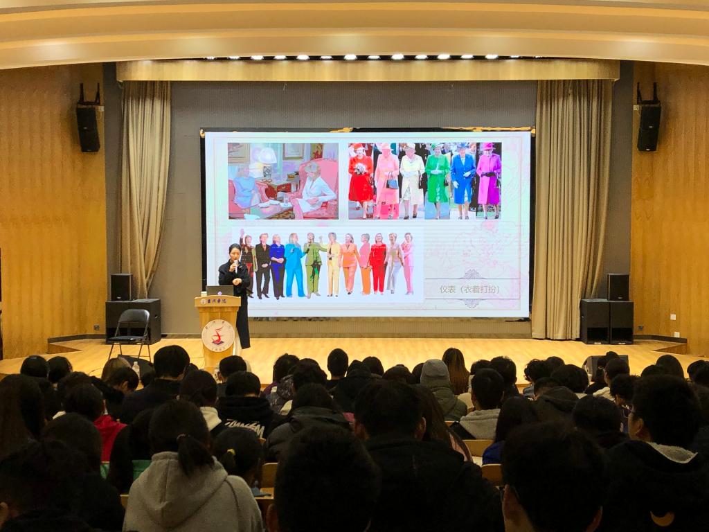 讲座中,周敏就仪表、仪态和礼仪三个方面进行深入浅出的讲解,图文并茂地阐述了“礼”的含义,让同学们明白了“礼”是对人表示敬意的统称。她从仪表开始阐述,结合台州学院毕业生实际应聘情况,提出大学生着装应符合身份与习俗,并现场对在座男女生给出不同的搭配建议。随后,就如何培养正确仪态、生活中的基本礼仪,进行了详细介绍,希望同学们仪容应干净整洁,举止要自然大方,自信从容地展现自己。整场讲座理实结合、妙趣横生,周敏老师幽默而睿智的讲解令人印象深刻,赢得在场同学的阵阵掌声。