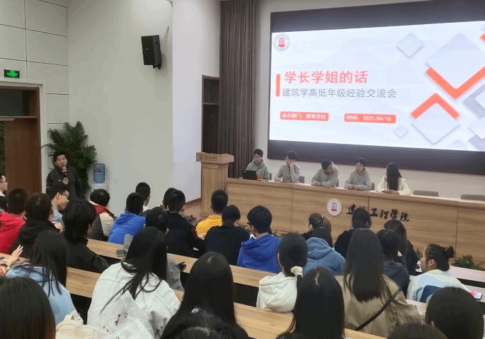 4月16日晚,学长学姐的话—建筑学高低年级经验交流会于建工学术报告厅举行,建筑学系主任林新峰、各任课教师、各级建筑学学生参加,建筑学系副主任班颜丰主持会议,本次交流会邀请了建筑学专业2016级5名同学与低年级同学面对面交流。