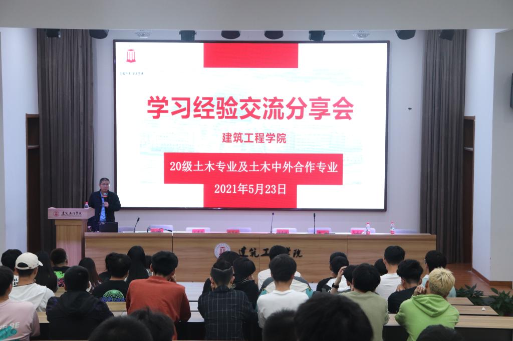 5月23日晚,建工学院召开土木工程专业学习经验交流会。学院党总支副书记、20土木(中外合作)2班班主任林霖出席,六位2018级优秀学生分享了专业学习体会与经验,2020级110位土木工程专业学生参加会议。